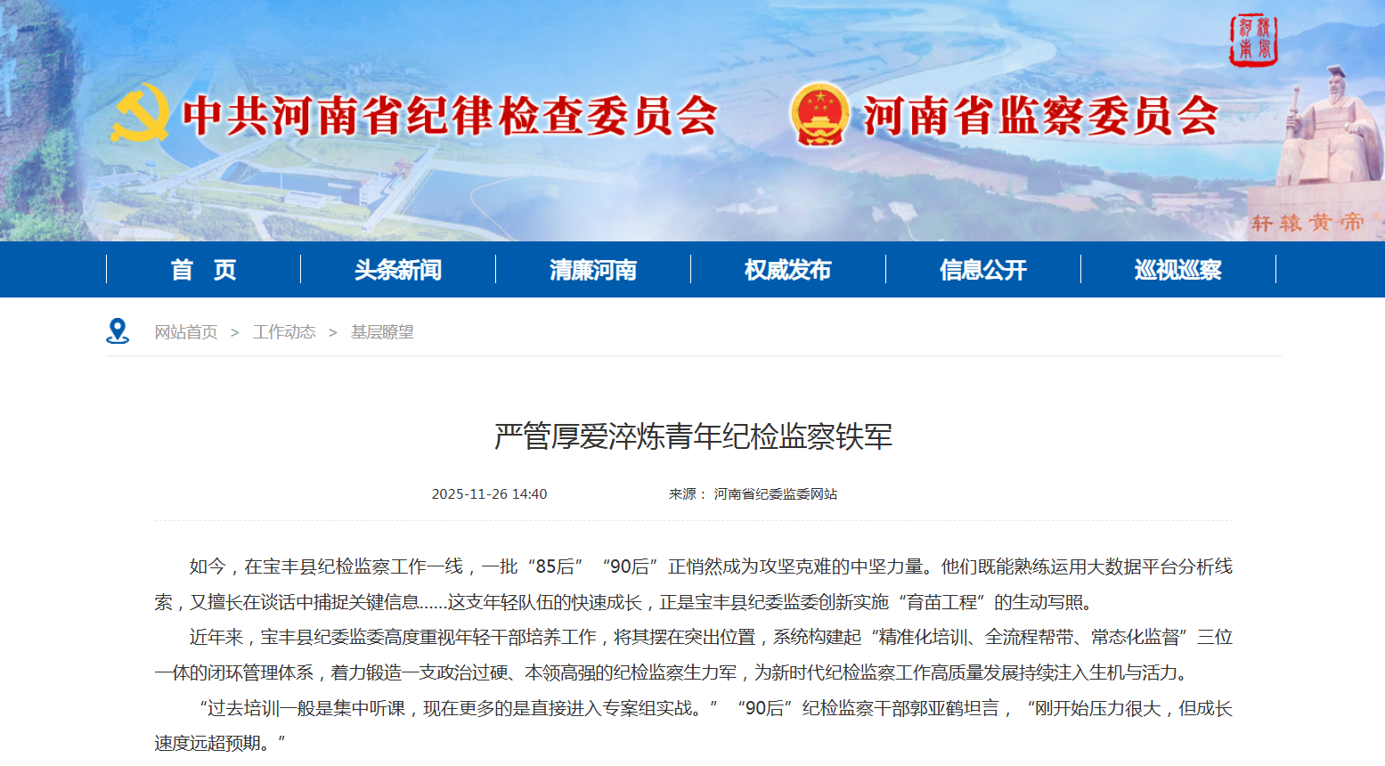近年来,宝丰县纪委监委高度重视年轻干部培养工作,将其摆在突出位置,系统构建起“精准化培训、全流程帮带、常态化监督”三位一体的闭环管理体系,着力锻造一支政治过硬、本领高强的纪检监察生力军,为新时代纪检监察工作高质量发展持续注入生机与活力。