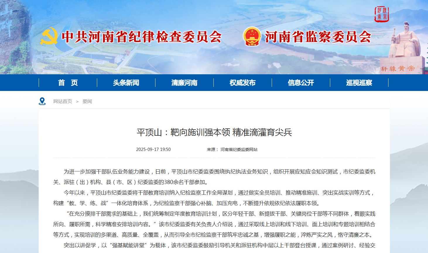今年以来,平顶山市纪委监委将干部教育培训纳入纪检监察工作全局谋划,通过做实全员培训、推动精准施训、突出实战实训等方式,构建“教、学、练、战”一体化培育体系,为纪检监察干部强心补脑、加压充电,不断提升依规依纪依法履职本领。