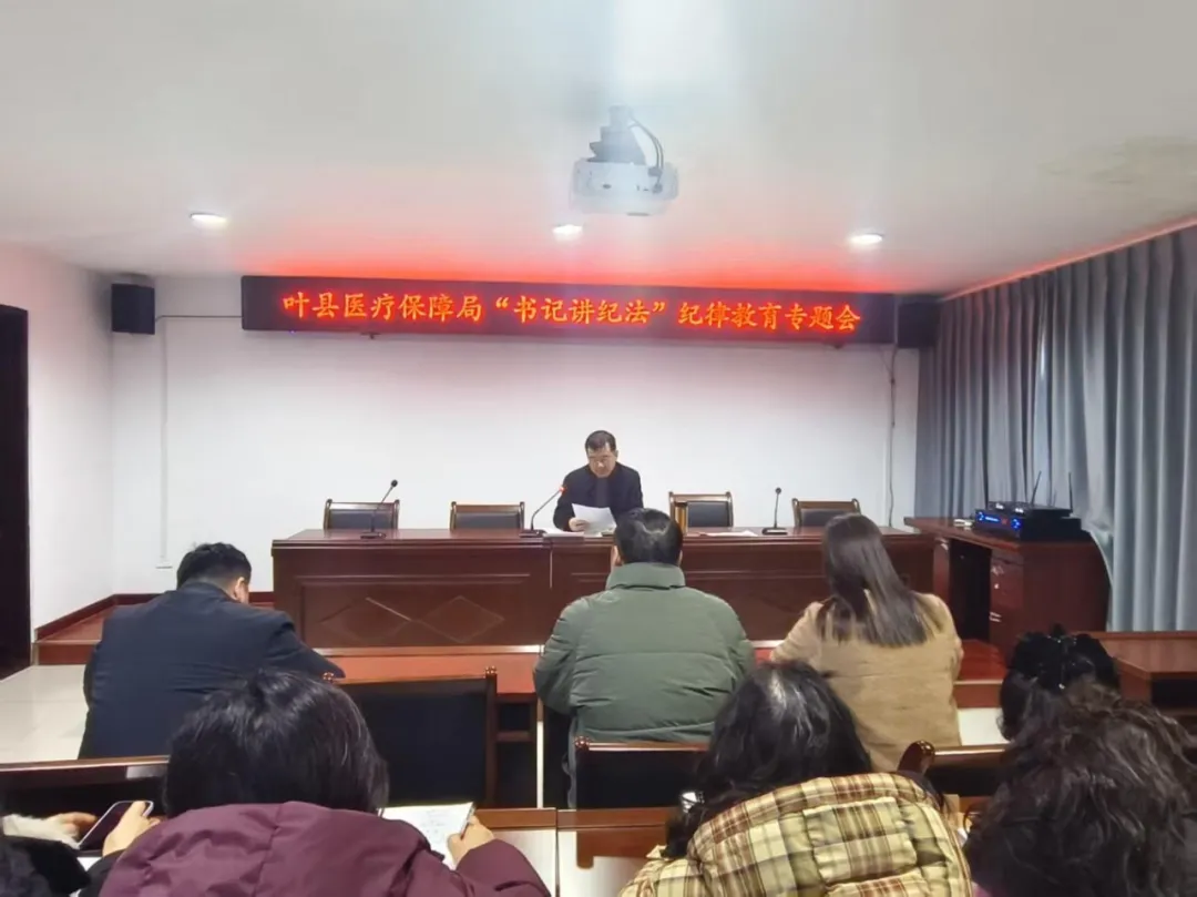 为纵深推进全面从严治党,持续深化党纪学习教育,筑牢党员干部思想防线,日前,叶县医疗保障局召开“书记讲纪法”纪律教育专题会议,局党组书记、局长郭方以“守纪律 明底线 严监管 净生态”为主题讲授廉政党课,机关全体党员干部参加会议。