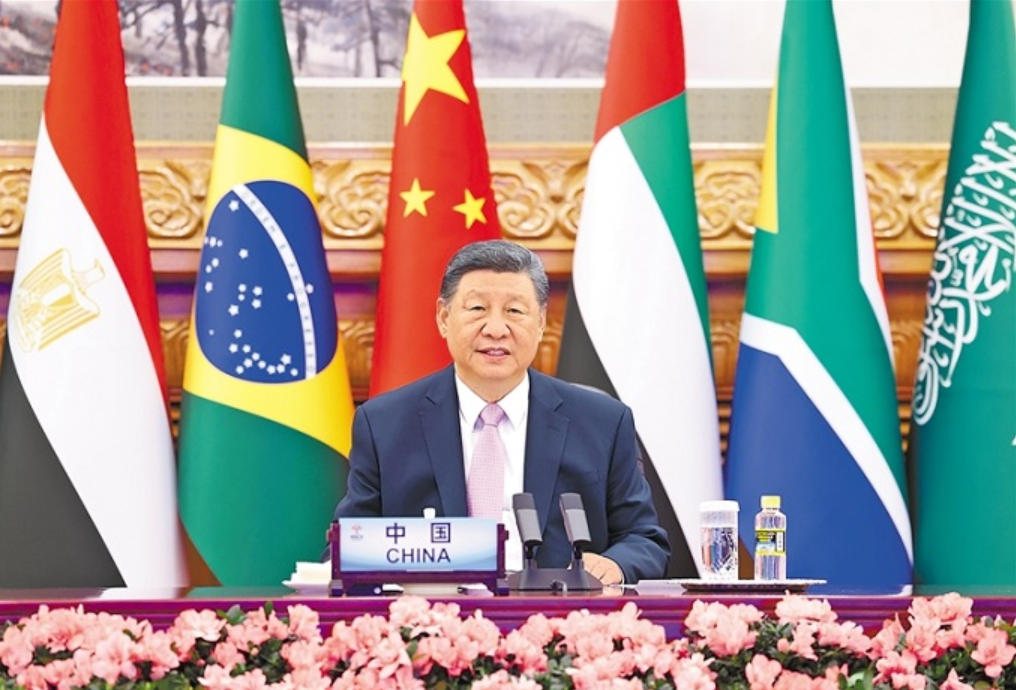 习近平指出,当前,世界百年变局加速演进,霸权主义、单边主义、保护主义甚嚣尘上。金砖国家作为全球南方第一方阵,要坚持弘扬开放包容、合作共赢的金砖精神,共同捍卫多边主义,维护多边贸易体制,推进“大金砖合作”,携手构建人类命运共同体。