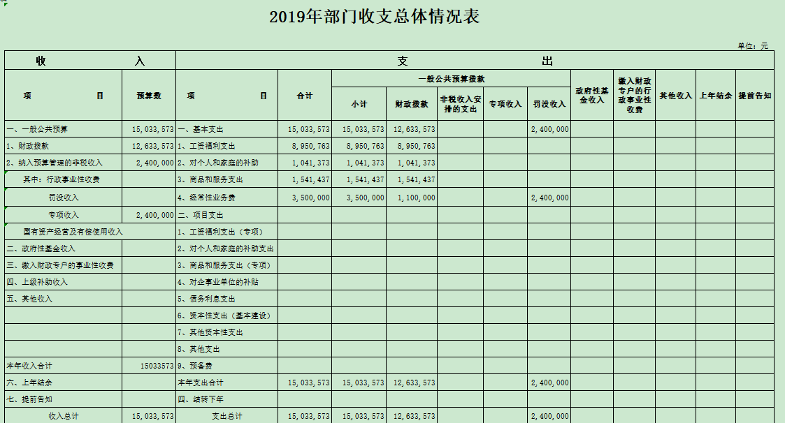 一、部门收支总体情况表