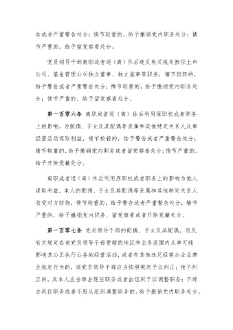 第一百零七条 党员领导干部的配偶、子女及其配偶,违反