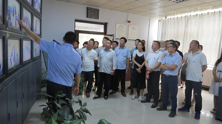 大家有序地在工作人员的带领讲解下,参观了被羁押人员的生活、劳教场所,目睹了服刑人员失去人身自由、接受改造的场景。从审讯室到会见室再到监区、铁门、高墙、红色警戒线等,零距离的参观,让全体党员干部真切地感受了高墙内外的反差。
