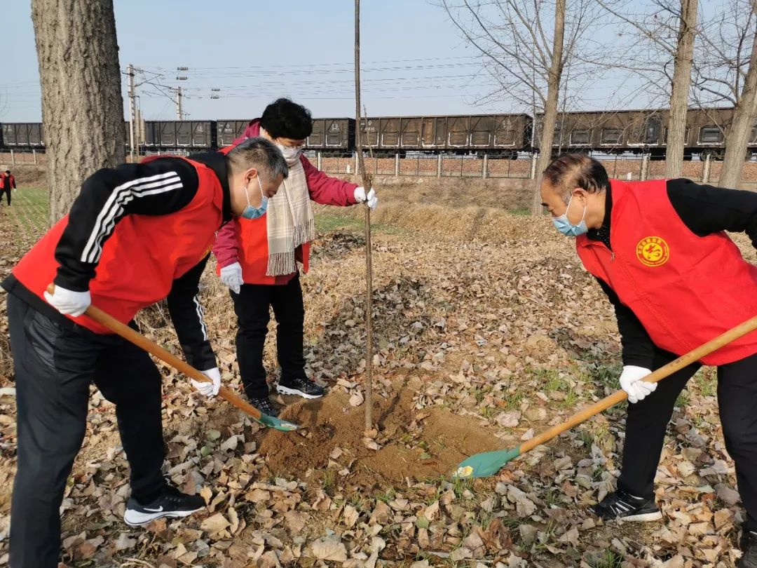身穿红马甲的志愿者们,来到火车道旁边的绿化地块,纷纷自告奋勇拿起铁锨和树苗,有的扶正树苗、有的挥锨培土、有的用脚踩实新土、有的拎着水桶浇水……大家一改平日严肃紧张的工作状态,不畏初冬严寒,全身心的投入到植树活动中,活动现场热闹非凡。经过一个多小时的合力奋战,一排排楸树苗迎风挺立,为大地增添了无限生机。