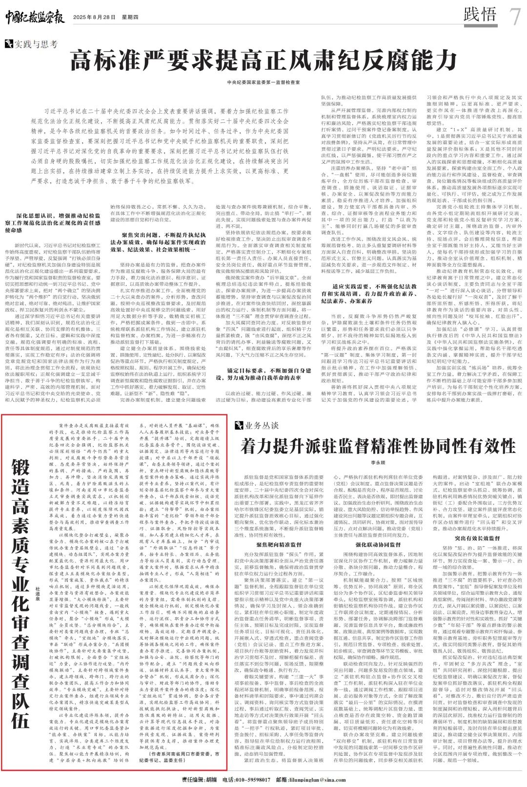 2025年8月28日,《中国纪检监察报》第7版、中央纪委国家监委网站要闻栏目同步刊发杜道泉署名文章《锻造高素质专业化审查调查队伍》。